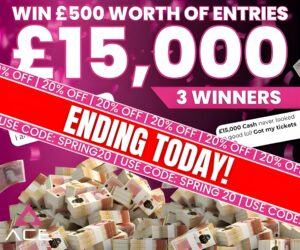 The live draw will take place on Ace Competitions Facebook page using Google’s random number generator to select the winning ticket number from all Entrants.