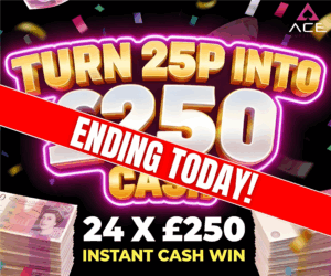 The live draw will take place on Ace Competitions Facebook page using Google’s random number generator to select the winning ticket number from all Entrants.