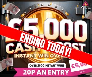 The live draw will take place on Ace Competitions Facebook page using Google’s random number generator to select the winning ticket number from all Entrants.