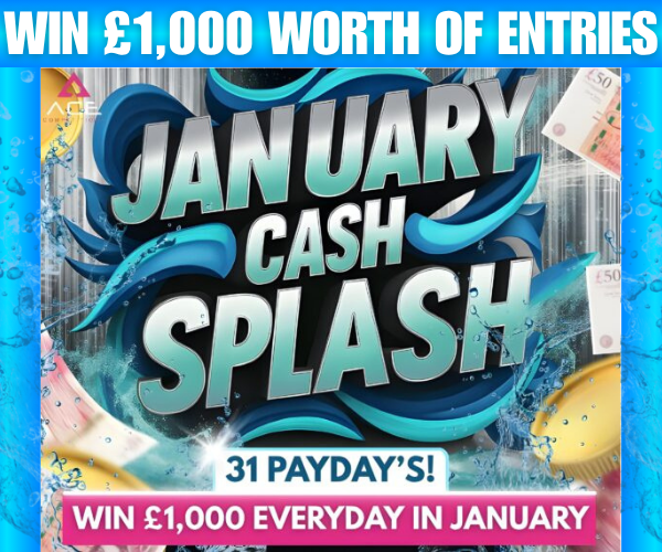 JANUARY CASH SPLASH – £1,000 CASH PRIZE DRAWN EVERY SINGLE DAY IN JANUARY!